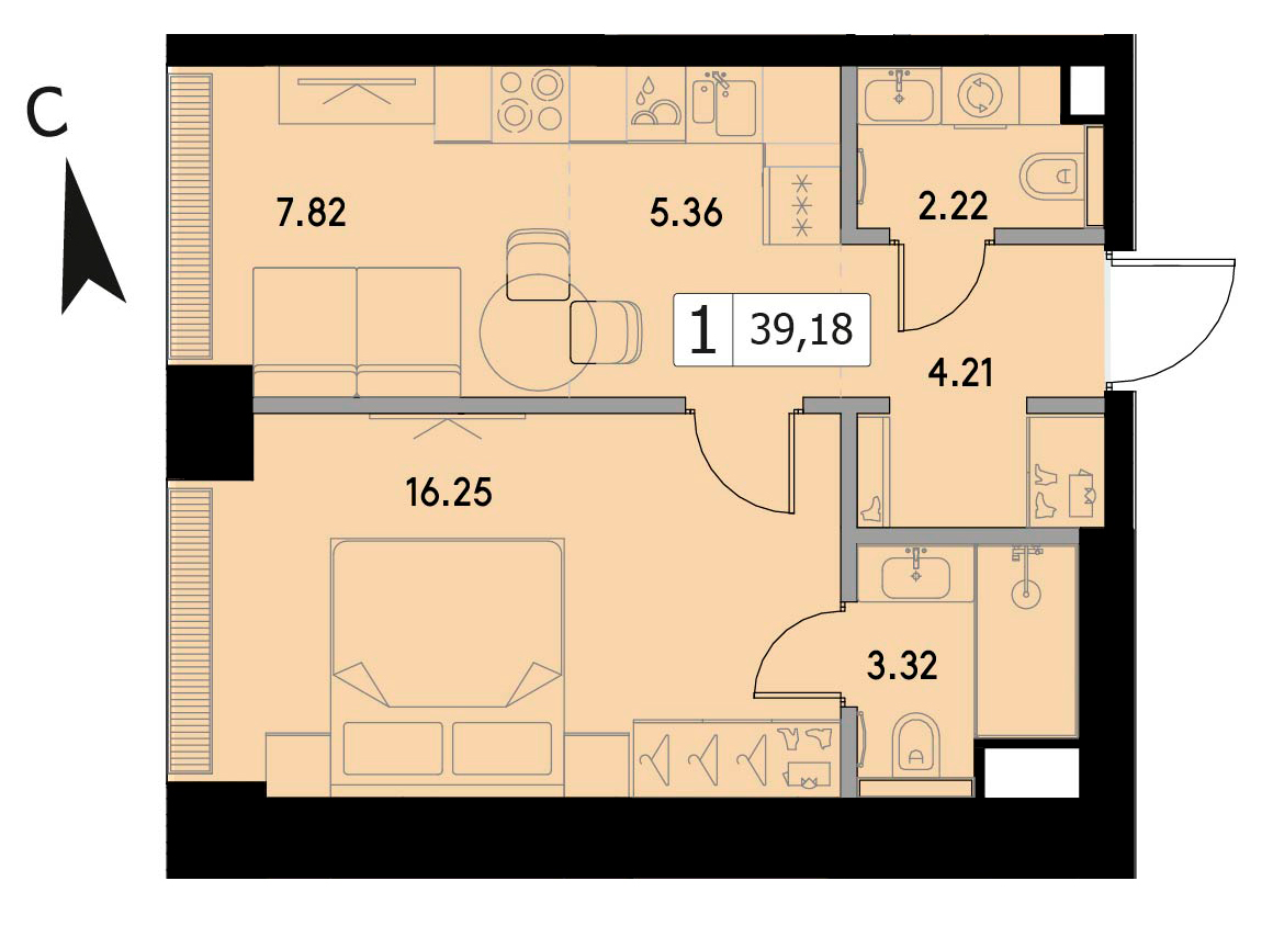 В продаже 1-комнатная квартира без отделки на 14 этаже, Корпус 1.5.