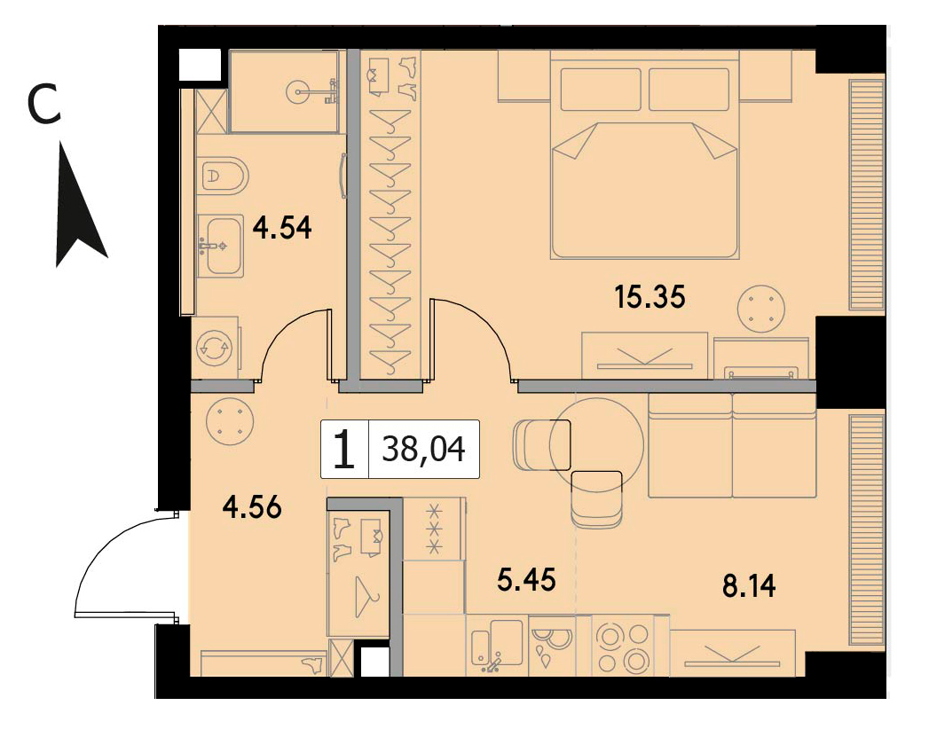 В продаже 1-комнатная квартира без отделки на 12 этаже, Корпус 1.5.