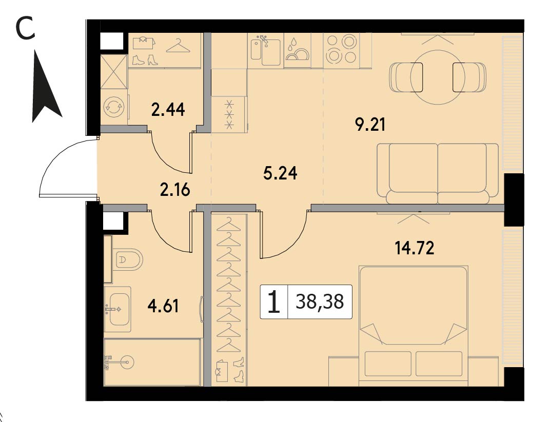 В продаже 1-комнатная квартира без отделки на 14 этаже, Корпус 1.2.
