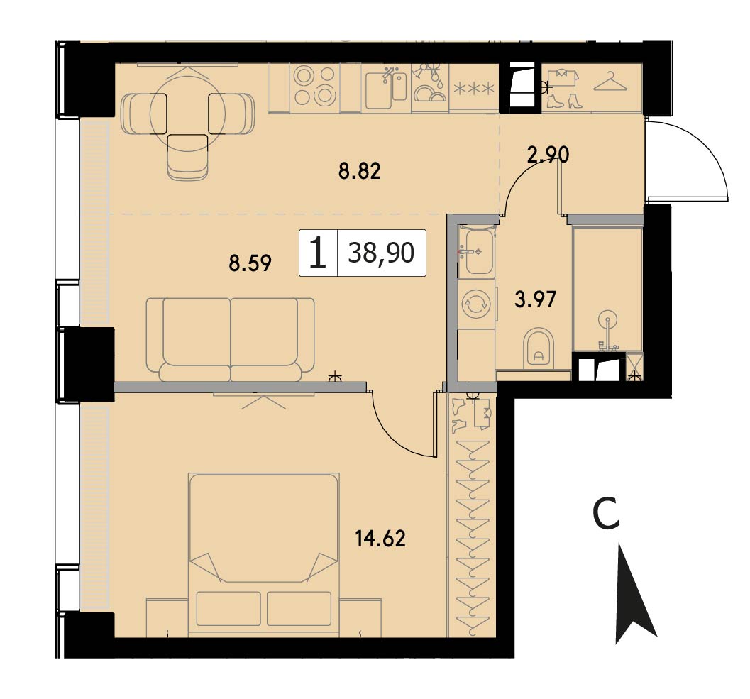 В продаже 1-комнатная квартира без отделки на 8 этаже, Корпус 1.5.