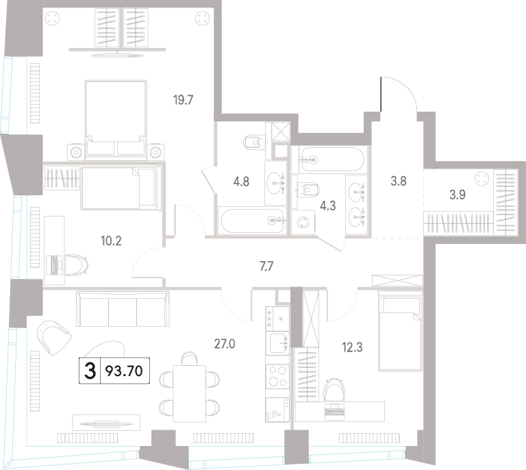 Представляем вашему вниманию 3-комнатная квартира без отделки на 12 этаже, 3 очередь, 5 этап, Корпус 6. Квартал шаговой доступности «Шагал» (Shagal) – это целый город, в основе которого лежит принцип 15-минутной доступности всей необходимой инфраструктуры и сервисов. Пешеходные маршруты отличаются разнообразностью и продуманностью. Короткие расстояния между основными точками помогают передвигаться с удовольствием по району и не выпадать из ритма большого города.