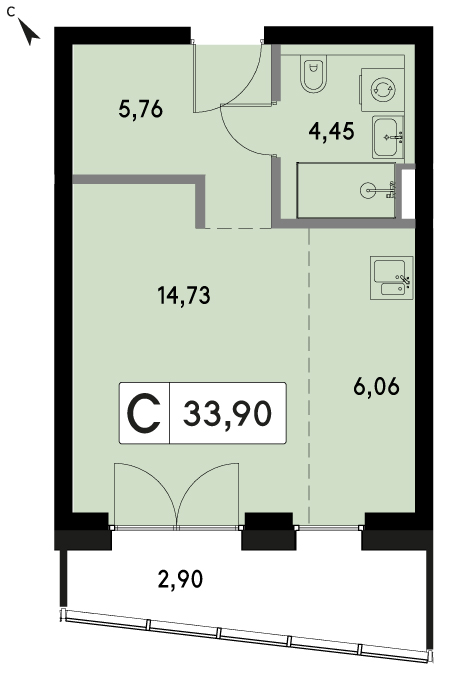 В продаже 1-комнатная квартира без отделки на 15 этаже, Корпус F.