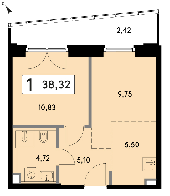 В продаже 1-комнатная квартира без отделки на 17 этаже, Корпус H.