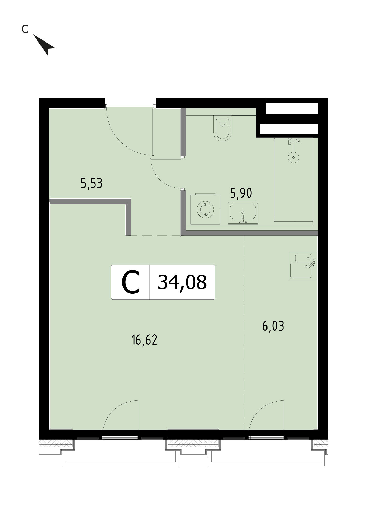 В продаже 1-комнатная квартира без отделки на 31 этаже, Корпус H.