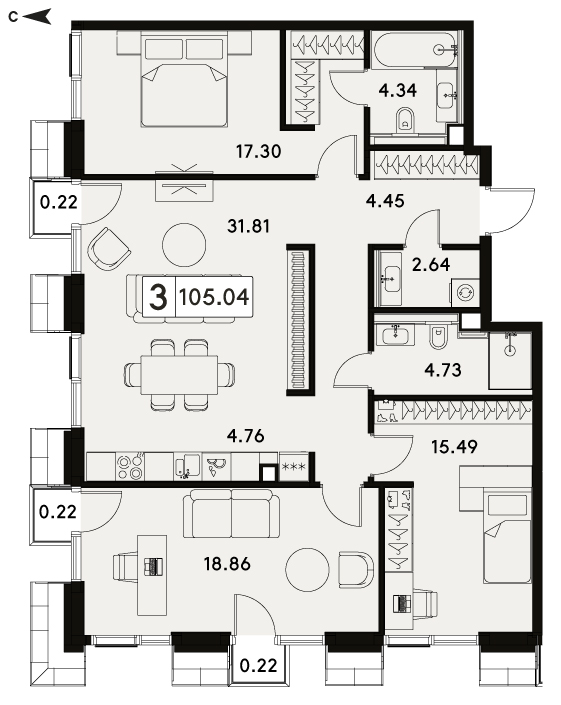 Представляем вашему вниманию 3-комнатная квартира без отделки на 6 этаже, Janssen. ЖК «МОД» (MOD) — премиальный жилой комплекс в историческом районе Москвы Марьина Роща (СВАО). В него входят три величественных небоскреба высотой от 44 до 55 этажей и два девятиэтажных клубных дома. Все корпуса связаны общей инфраструктурой. Квартал возводится девелопером MR в сотрудничестве с архитектурным бюро Kleinewelt Architekten. Дата сдачи - IV квартал 2025 года.