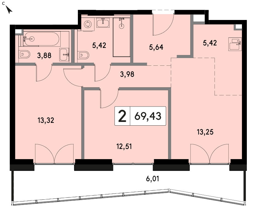 В продаже 2-комнатная квартира с отделкой на 26 этаже, Корпус H.