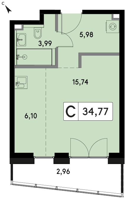 Продается квартира-студия с отделкой на 26 этаже, Корпус H.
