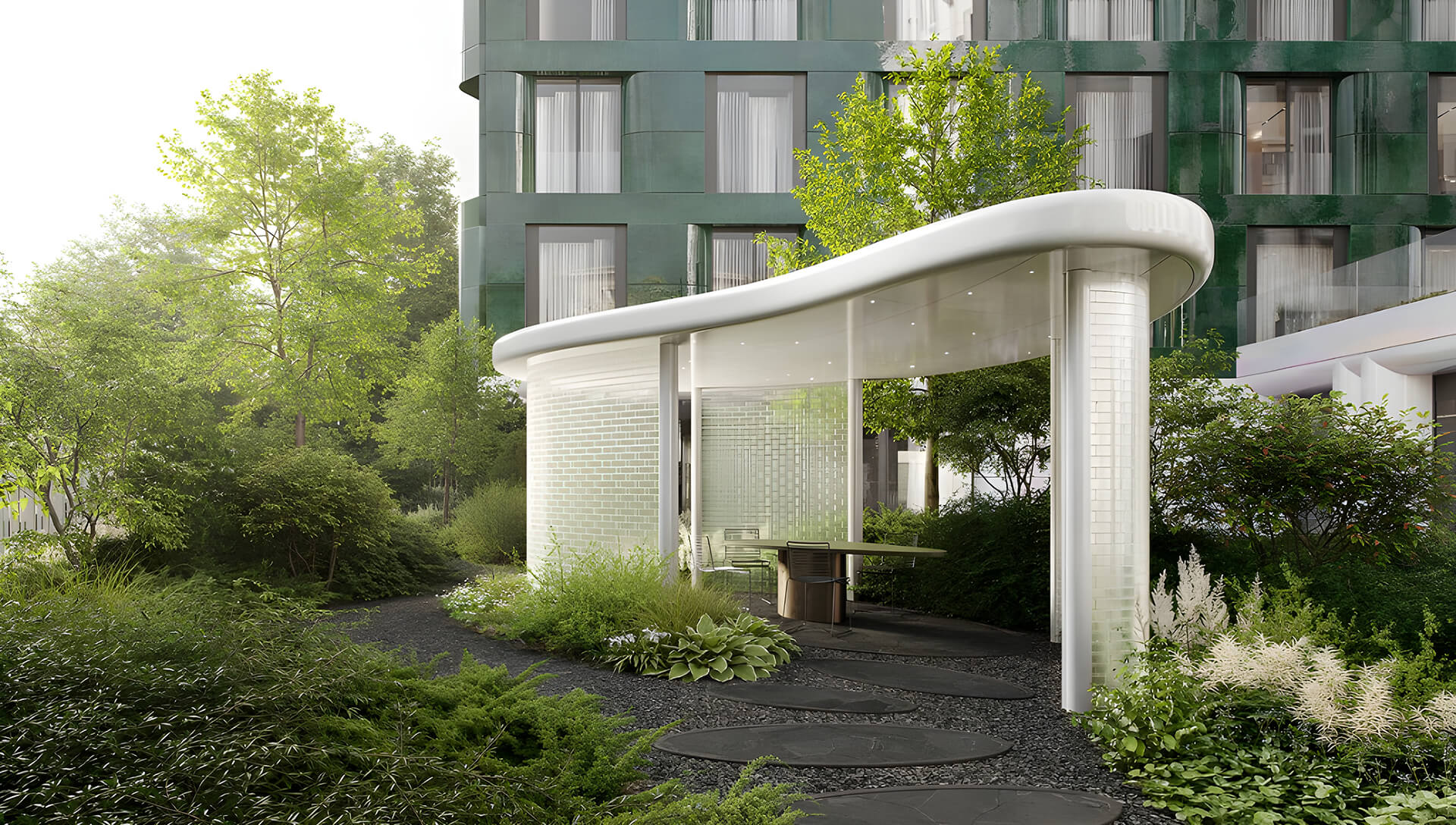 Два элегантных корпуса, соединённые камерной галереей, формируют закрытое пространство с ограниченным количеством резиденций. Здесь нет лишнего — только тишина, масштаб и внимание к деталям.