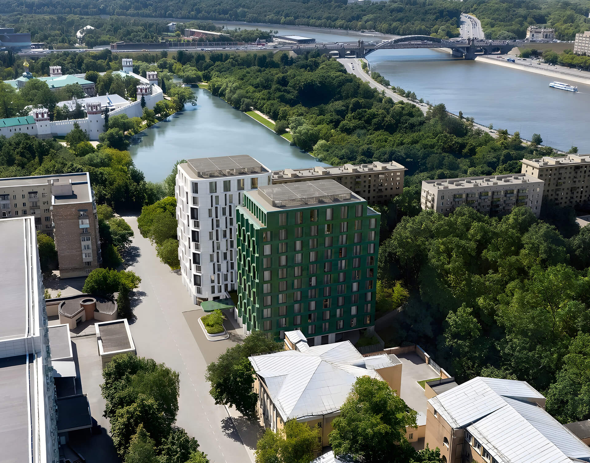 В шаговой доступности — Новодевичий монастырь, парки и набережные, лучшие школы, фитнес-клубы и рестораны. При этом сам комплекс расположен в глубине тихого квартала, сохраняя ощущение уединения.