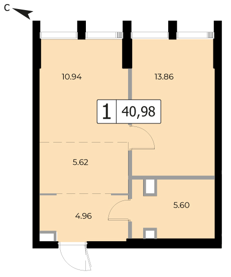 Однокомнатная квартира 43.51 м², 10 этаж, Жилой комплекс «MOD» (МОД)