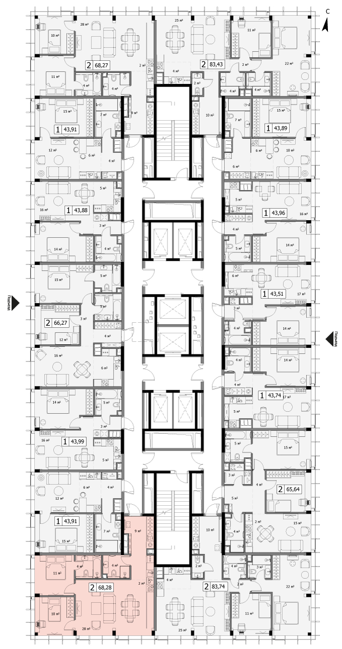 Двухкомнатная квартира 68.7 м², 50 этаж, Жилой комплекс «MOD» (МОД)