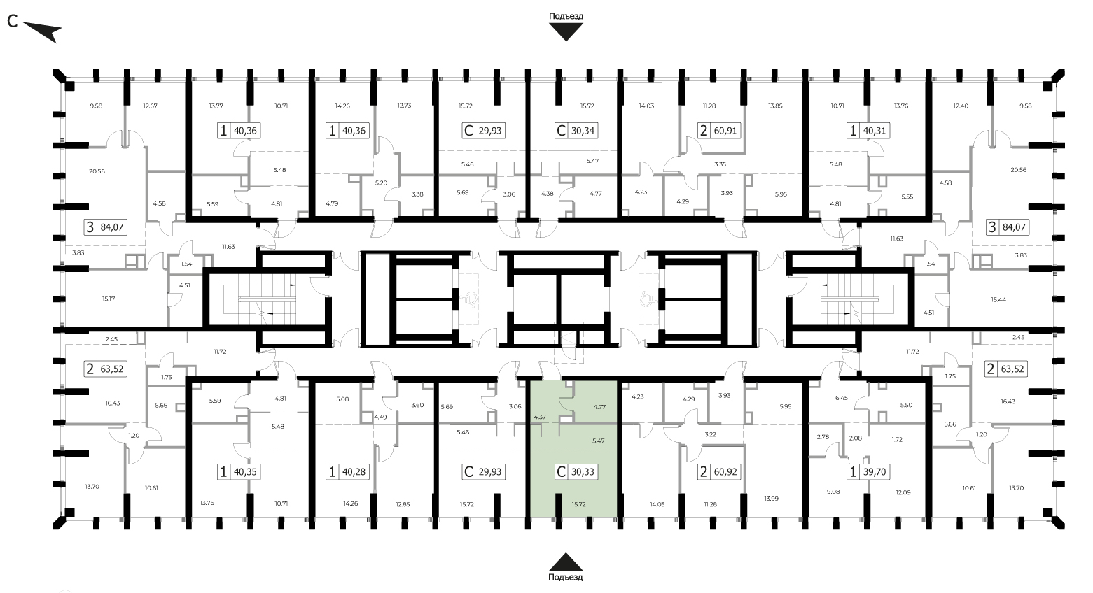 Студия №76, 30.74 м², 6 этаж, Жилой комплекс «MOD» (МОД)