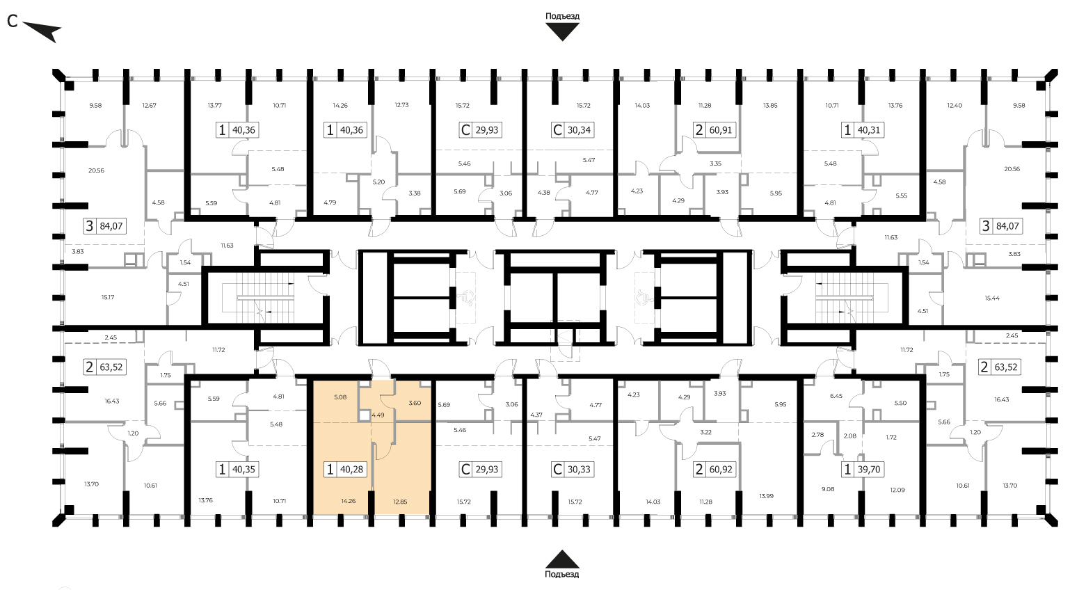 Однокомнатная квартира №78, 40.89 м², 6 этаж, Жилой комплекс «MOD» (МОД)
