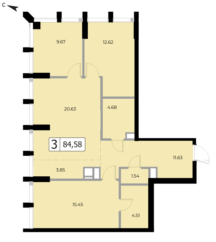 Трехкомнатная квартира 85.21 м², 7 этаж, Жилой комплекс «MOD» (МОД)