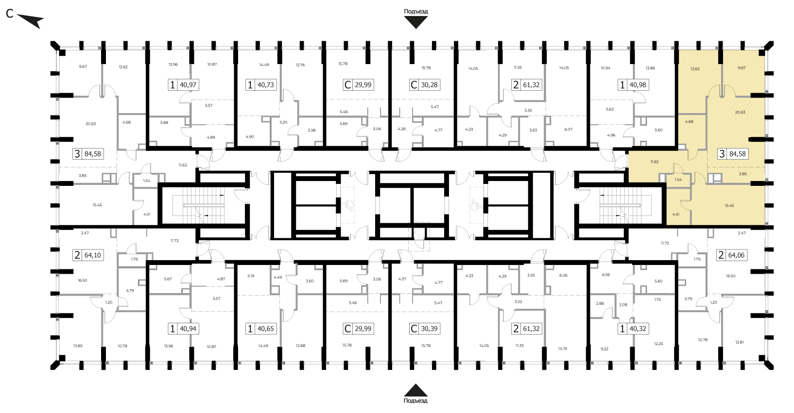 Трехкомнатная квартира №232, 85.75 м², 16 этаж, Жилой комплекс «MOD» (МОД)