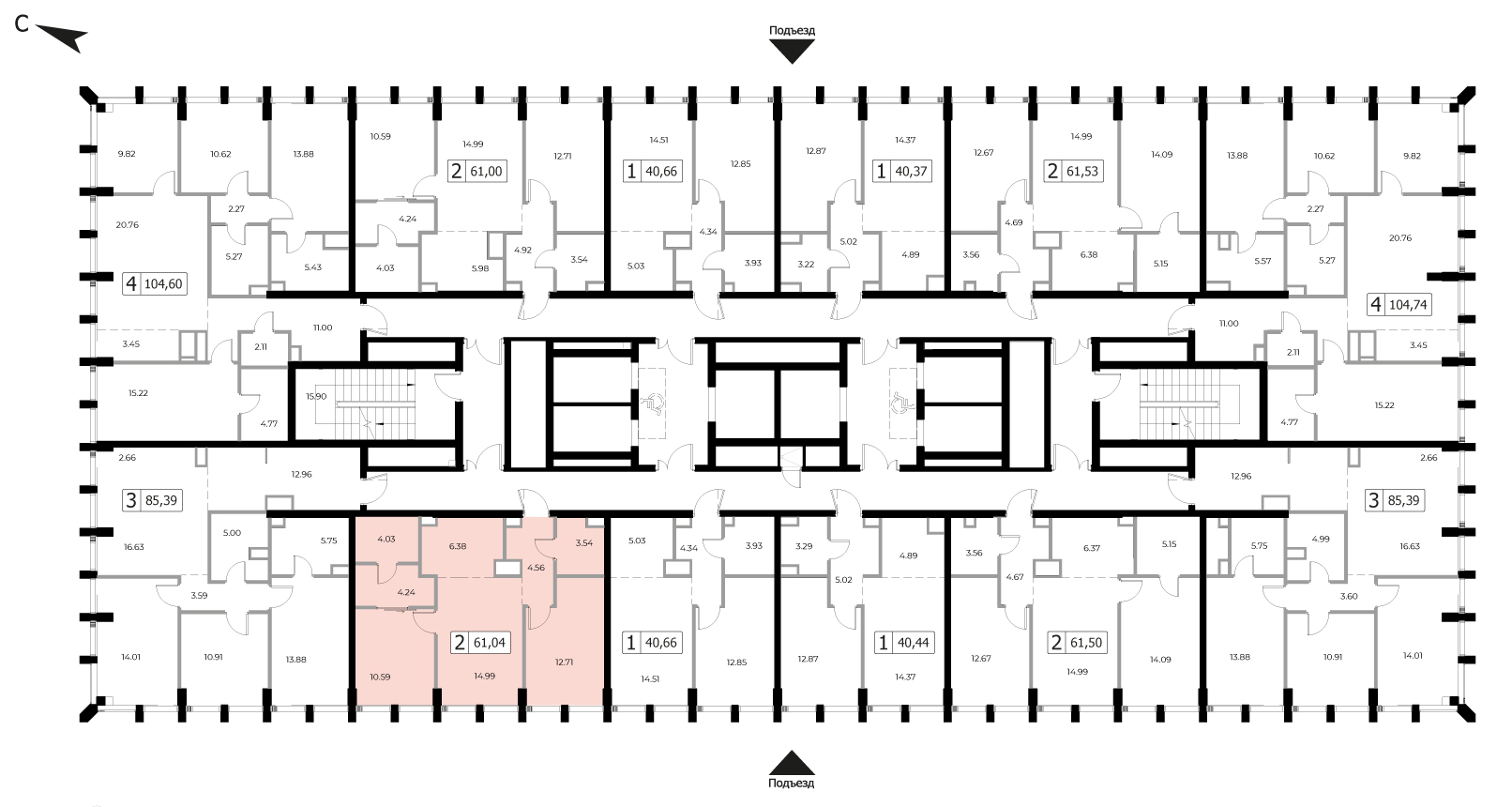 Двухкомнатная квартира №565, 62.14 м², 38 этаж, Жилой комплекс «MOD» (МОД)