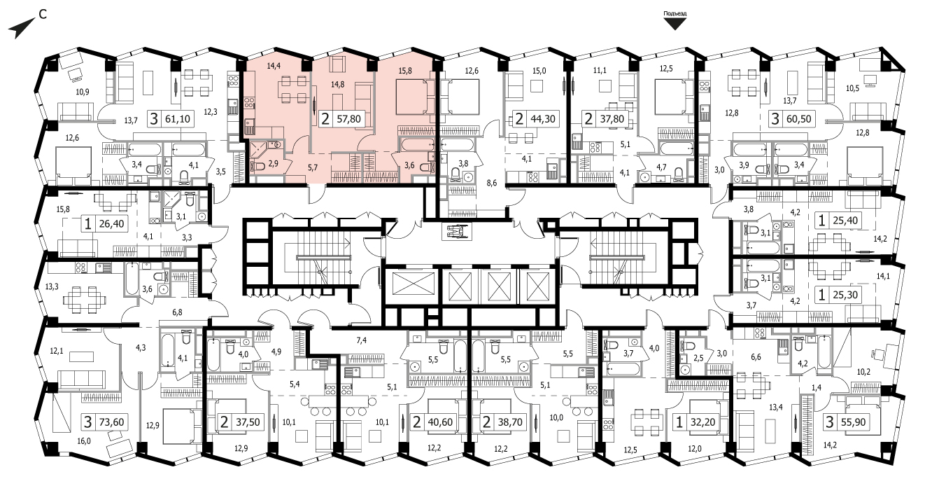Двухкомнатная квартира №547, 57.8 м², 14 этаж, Жилой комплекс «INDY TOWERS» (Инди Тауэрс)