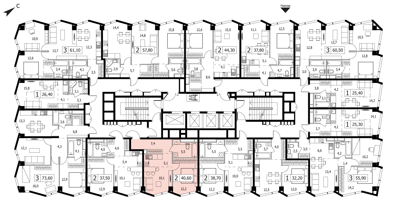 1-комнатные и евродвушки — 75 000 руб.,