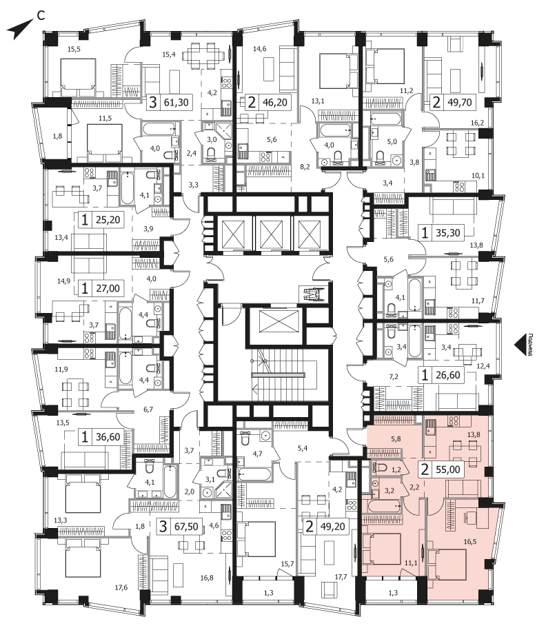 Двухкомнатная квартира №914, 55 м², 19 этаж, Жилой комплекс «INDY TOWERS» (Инди Тауэрс)