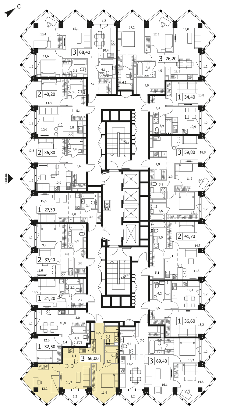 Двухкомнатная квартира №284, 56 м², 22 этаж, Жилой комплекс «INDY TOWERS» (Инди Тауэрс)