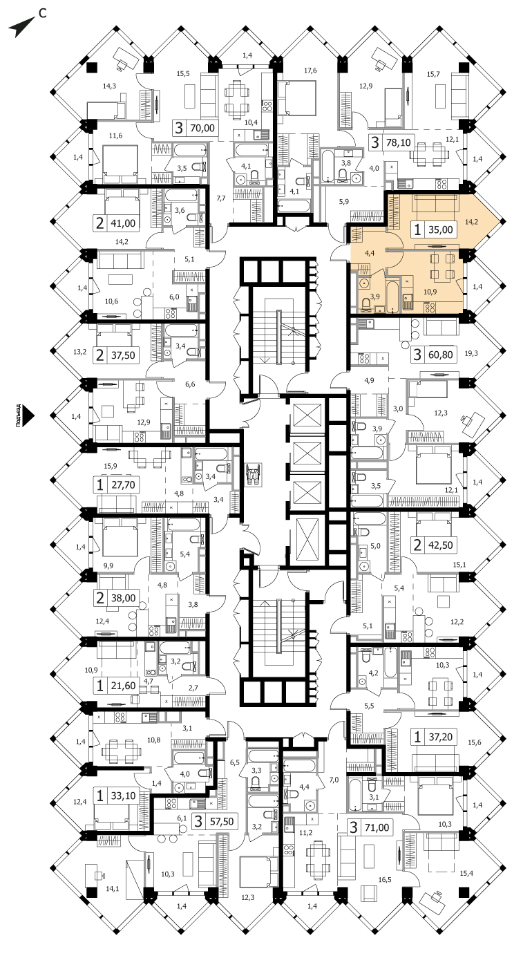 Однокомнатная квартира №335, 35 м², 25 этаж, Жилой комплекс «INDY TOWERS» (Инди Тауэрс)