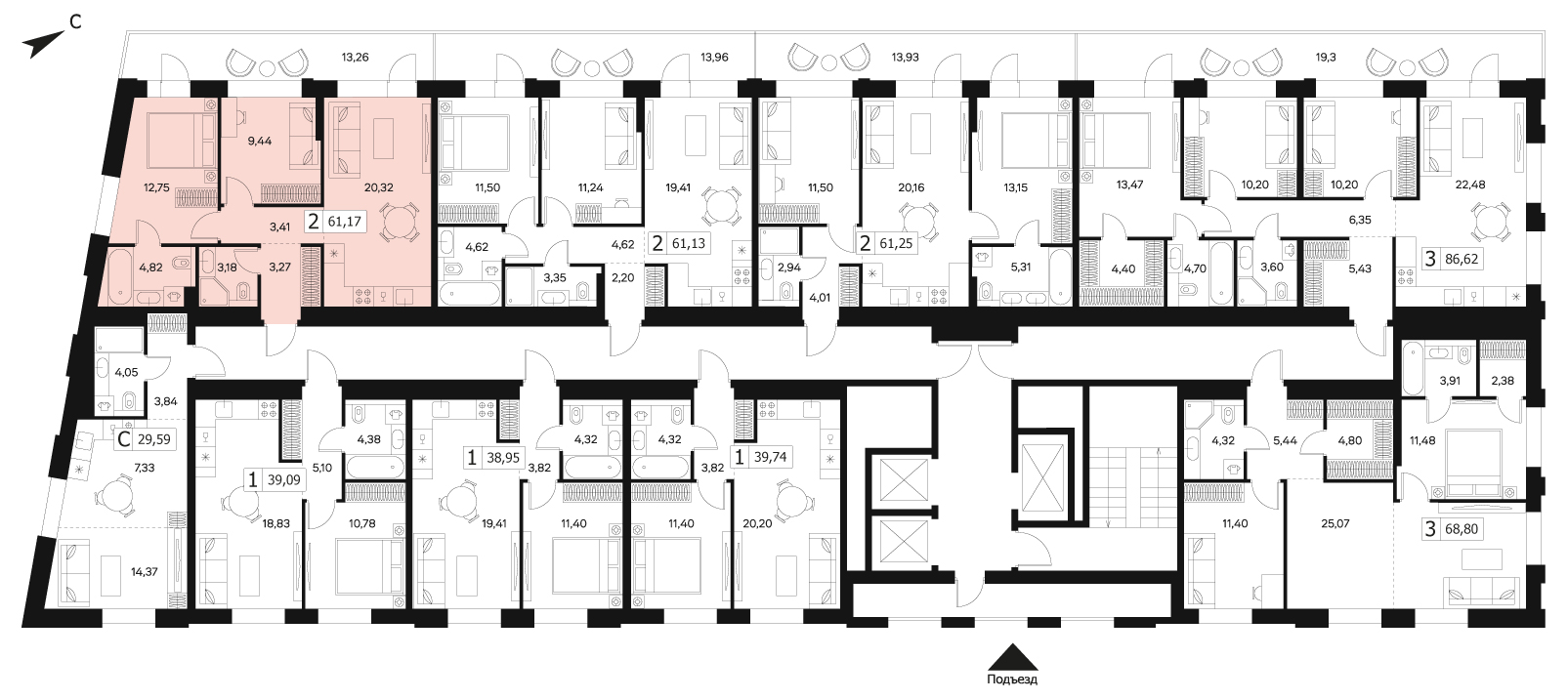 Трехкомнатная квартира №144, 61.17 м², 16 этаж, ЖК «FORST» (Форст)