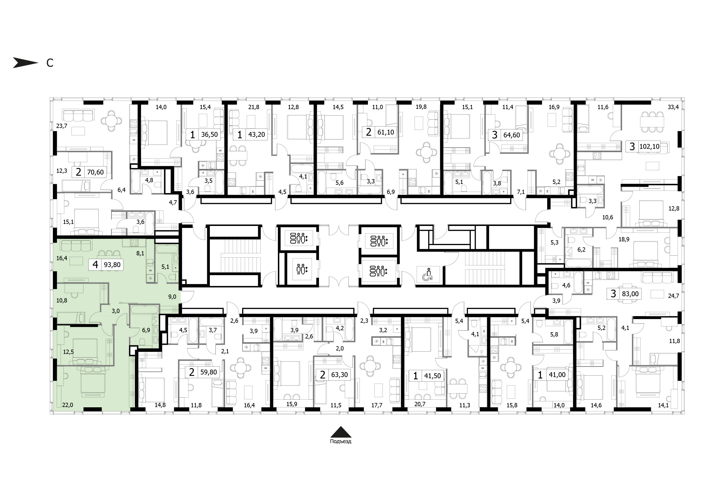 93.8 м²