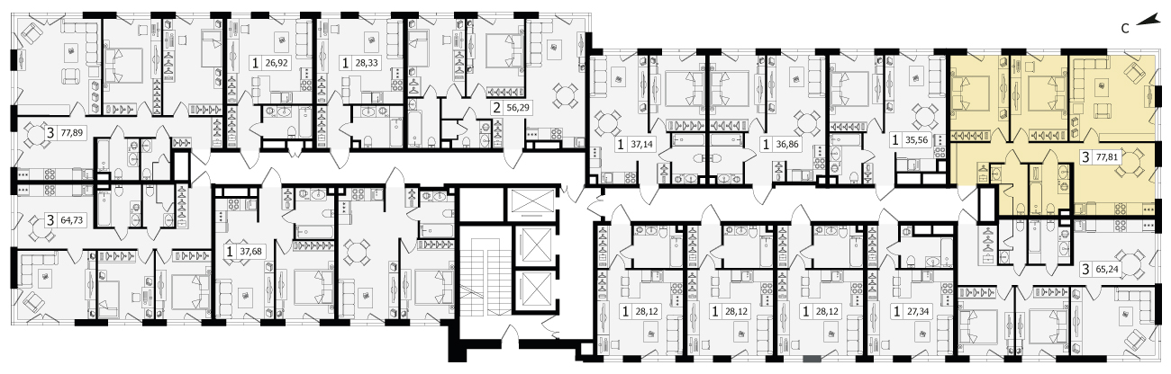 Трехкомнатный апартамент №189, 78.3 м², 17 этаж, Жилой квартал Зорге 9
