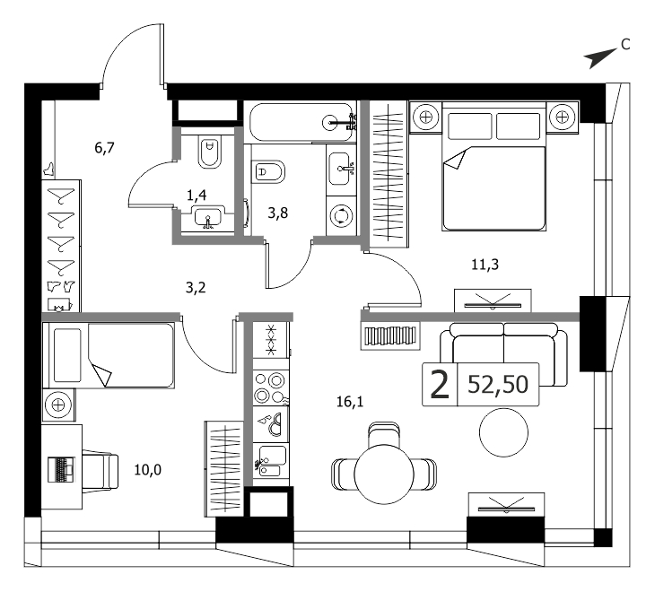 от 56.8 м2