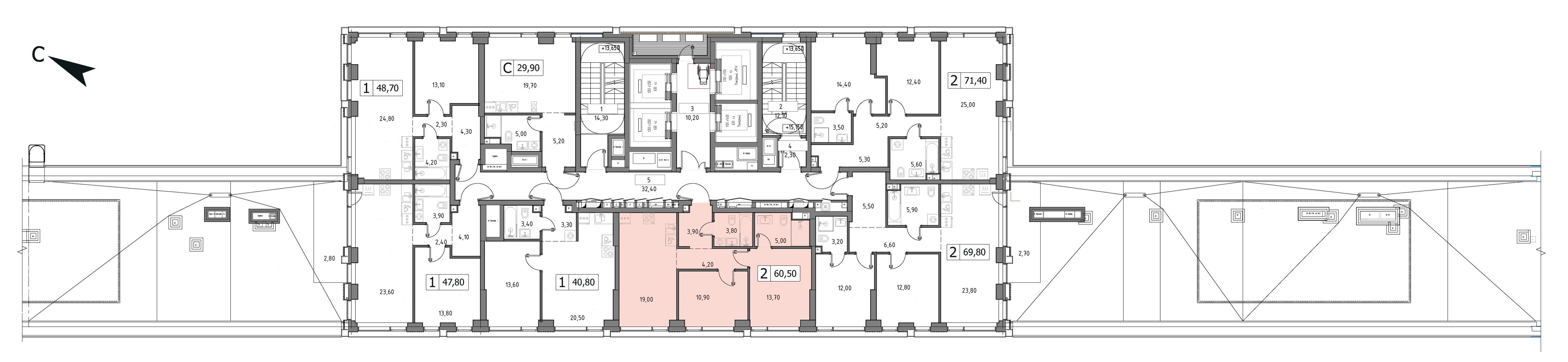 Комфортная двухкомнатная квартира квартира площадью 60.5 м² без отделки. Лот расположен на 5 этаже, корпуса 2 ЖК «СитидЗен» (Cityzen).Комплекс находится по адресу: г. Москва, Вишневая, срок сдачи 2027г.. Это соединение удобной инфраструктуры городской застройки и зеленых зон отдыха.