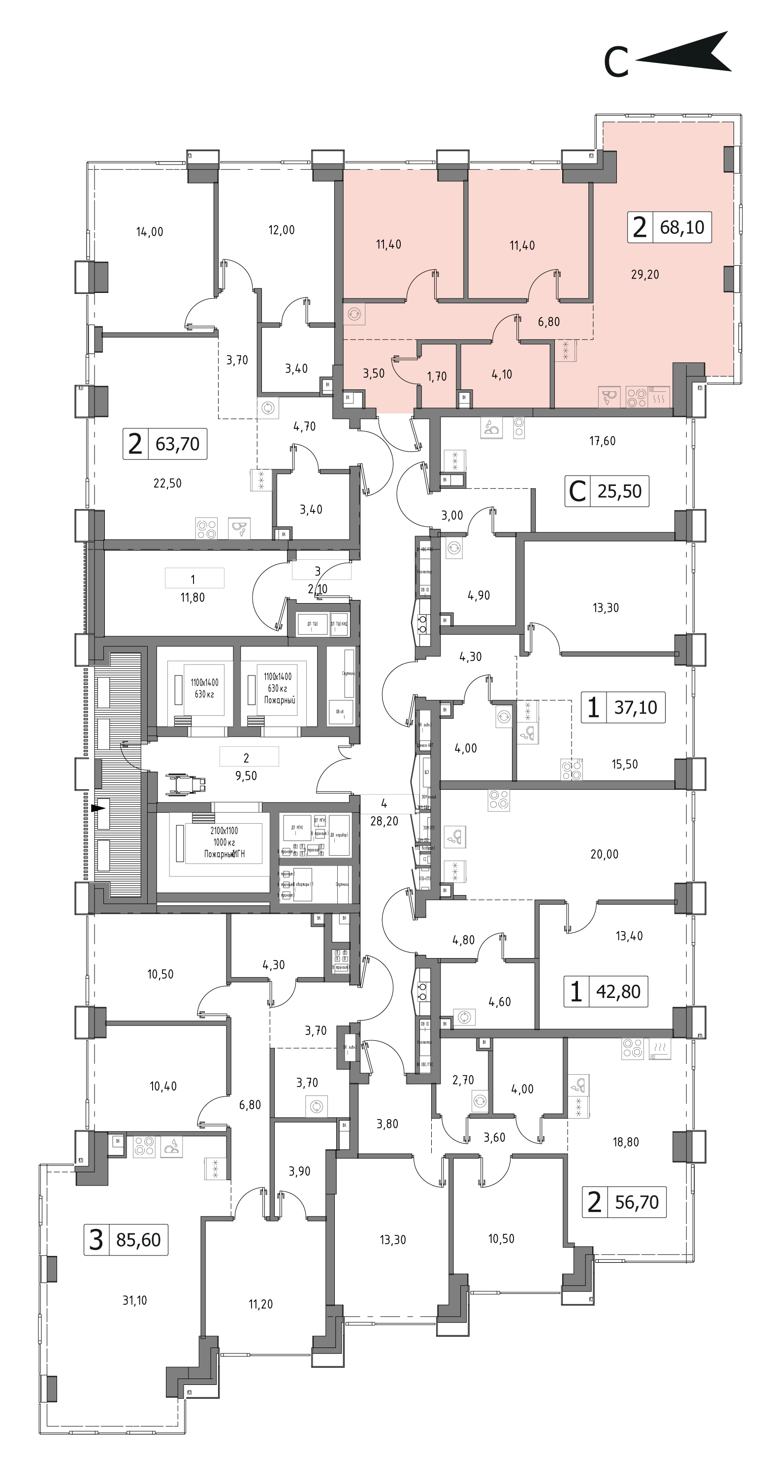 68.4 м²