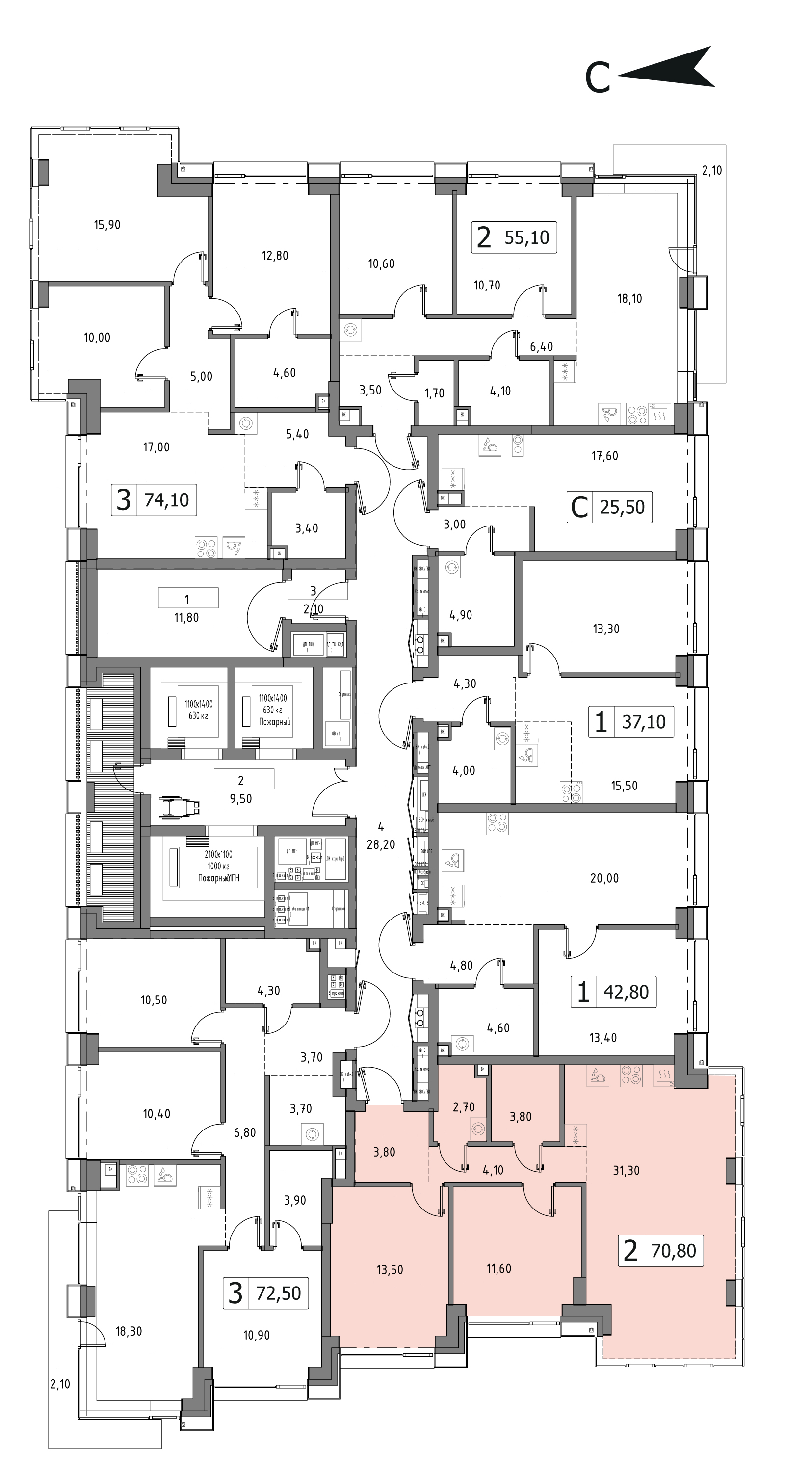 Комфортная двухкомнатная квартира квартира площадью 71.6 м² без отделки. Лот расположен на 25 этаже, корпуса 3 жилого комплекса «CITYZEN» (СитиЗен).Комплекс находится по адресу: г. Москва, Вишневая, срок сдачи 2027г.. Это соединение удобной инфраструктуры городской застройки и зеленых зон отдыха.