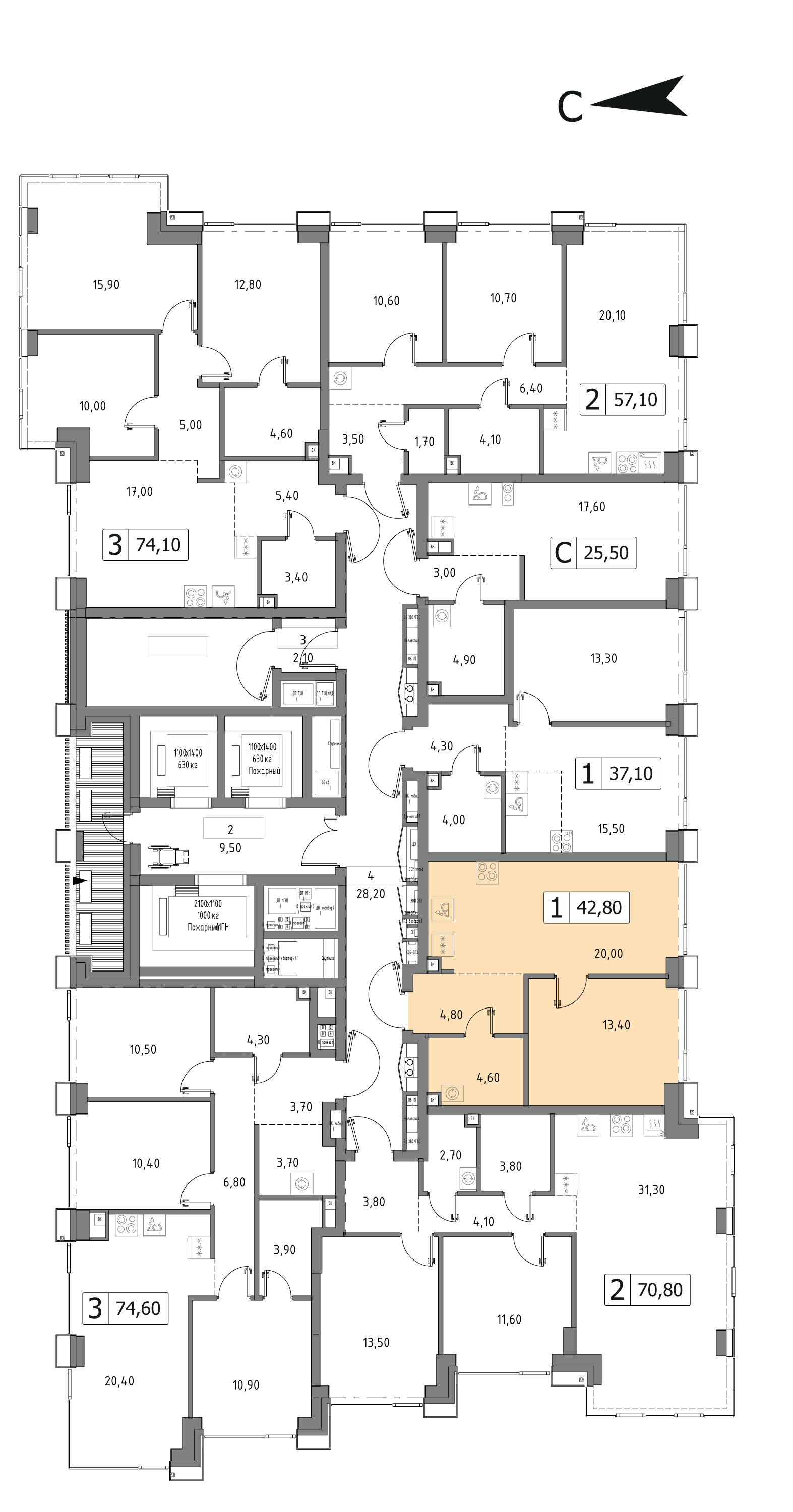 Комфортная однокомнатная квартира квартира площадью 43.2 м² без отделки. Лот расположен на 27 этаже, корпуса 3 ЖК «СитидЗен» (Cityzen).Комплекс находится по адресу: г. Москва, Вишневая, срок сдачи 2027г.. Это соединение удобной инфраструктуры городской застройки и зеленых зон отдыха.