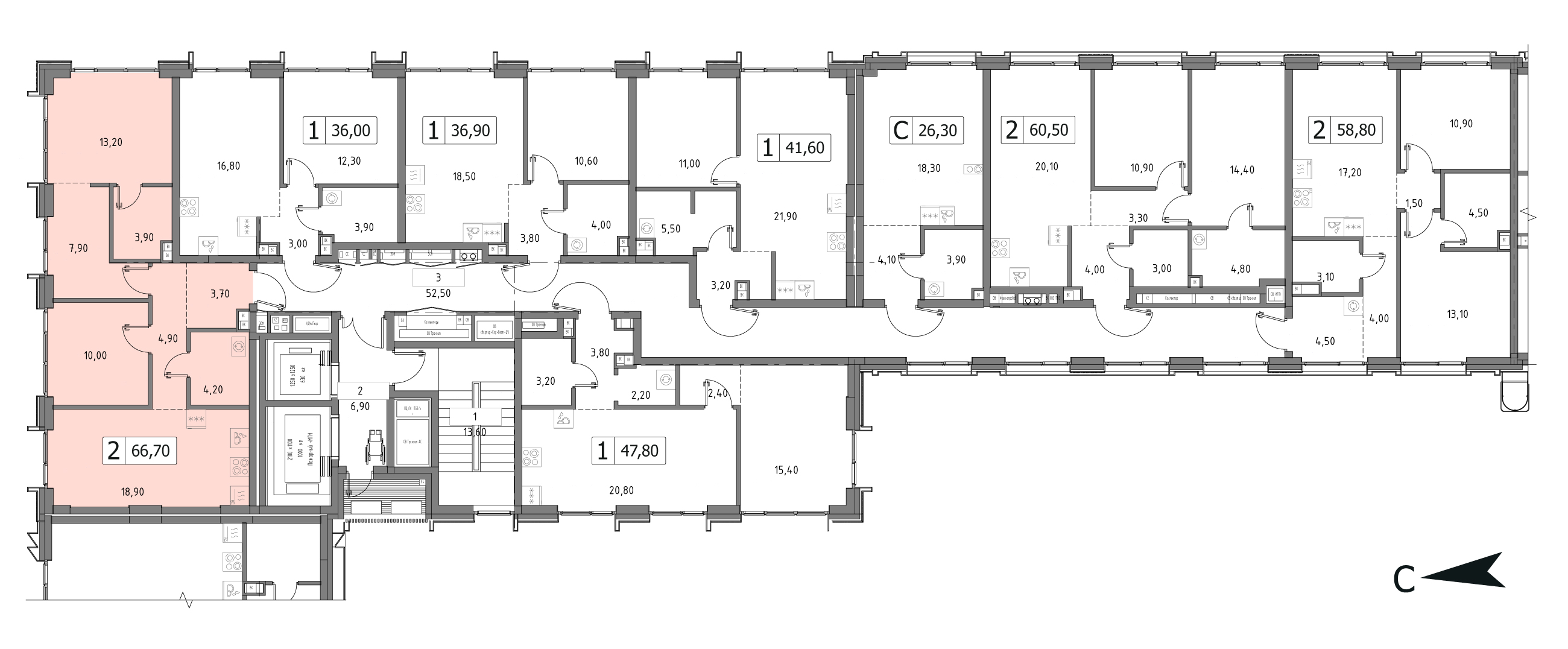 от 26.3 м2