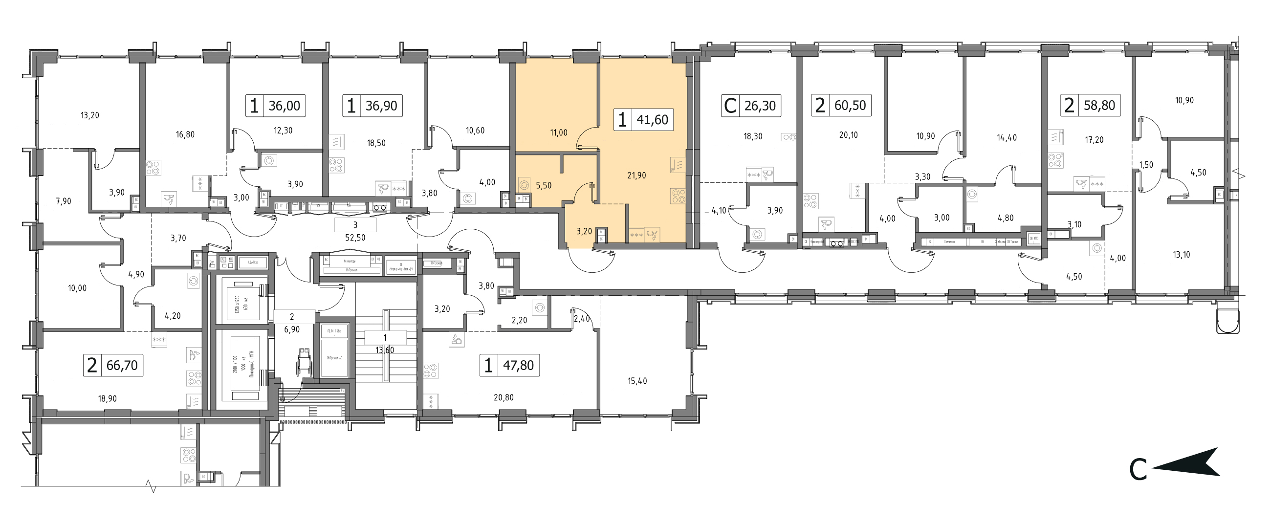 Однокомнатная квартира 41.7 м², 3 этаж, ЖК «СитидЗен» (Cityzen)