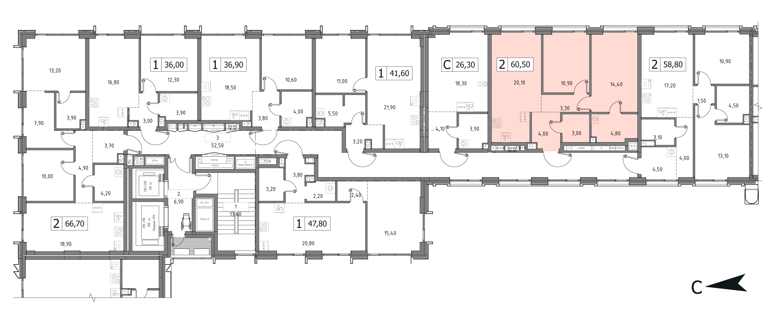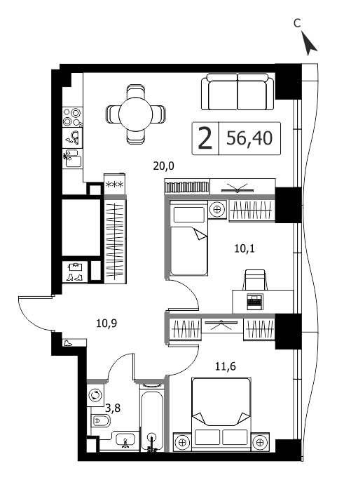 Двухкомнатная квартира №40306, 60.5 м², 3 этаж, Жилой комплекс «CITYZEN» (СитиЗен)