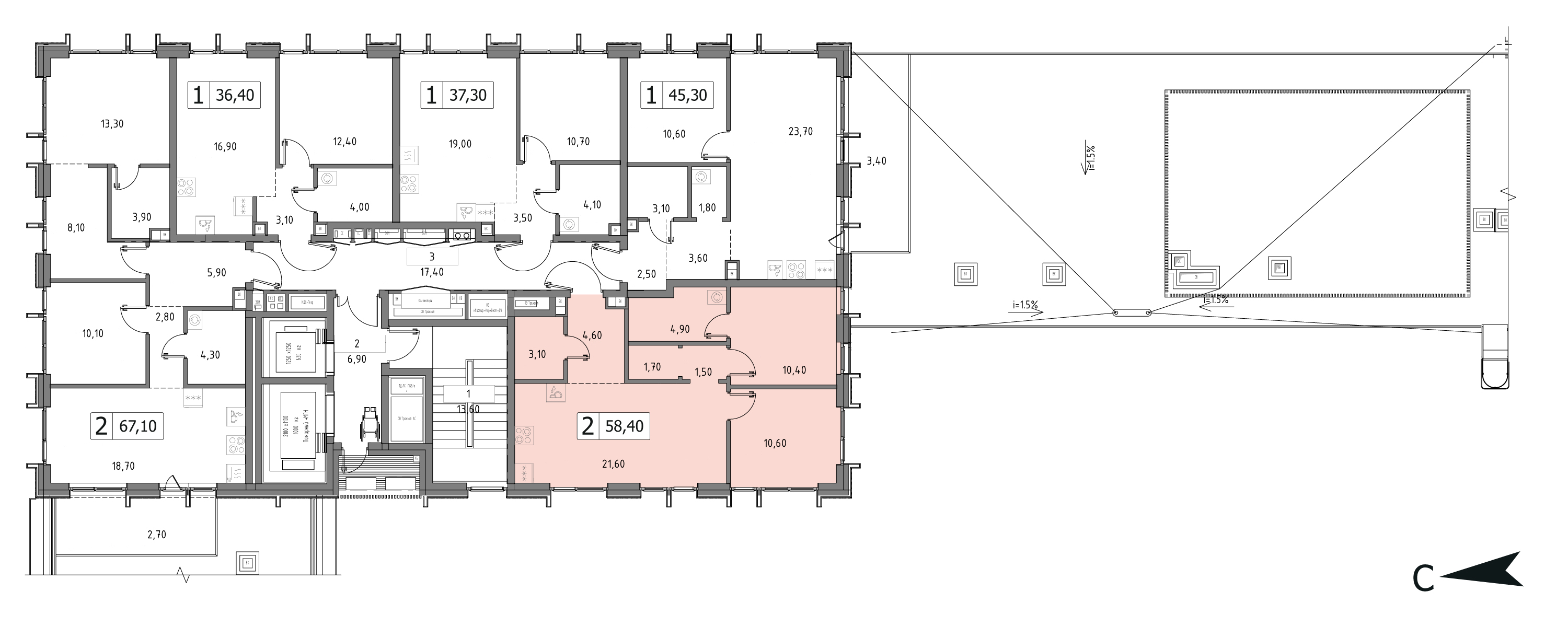 от 58.4 м2