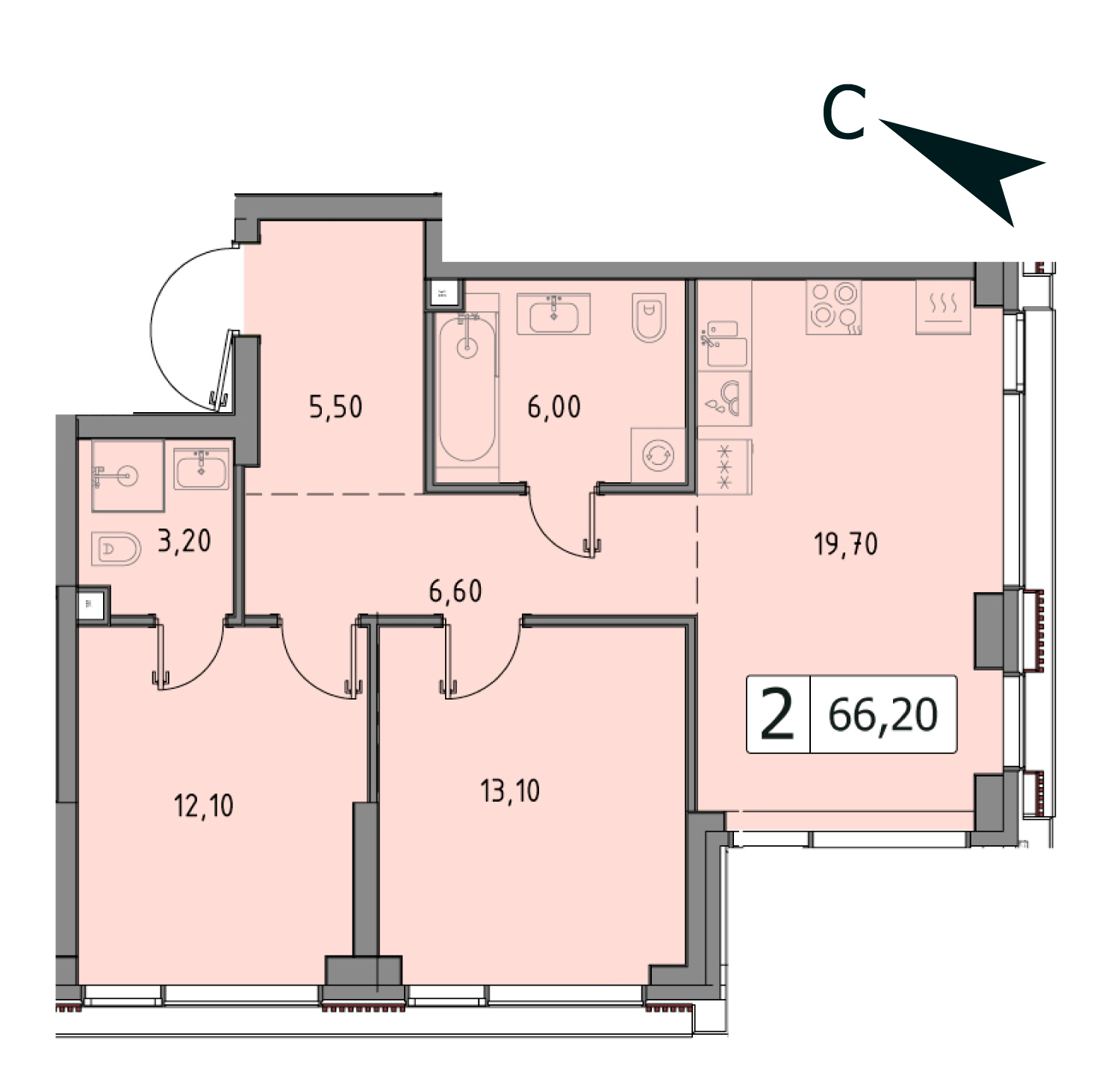 Двухкомнатная квартира №51701, 61.9 м², 17 этаж, Жилой комплекс «CITYZEN» (СитиЗен)