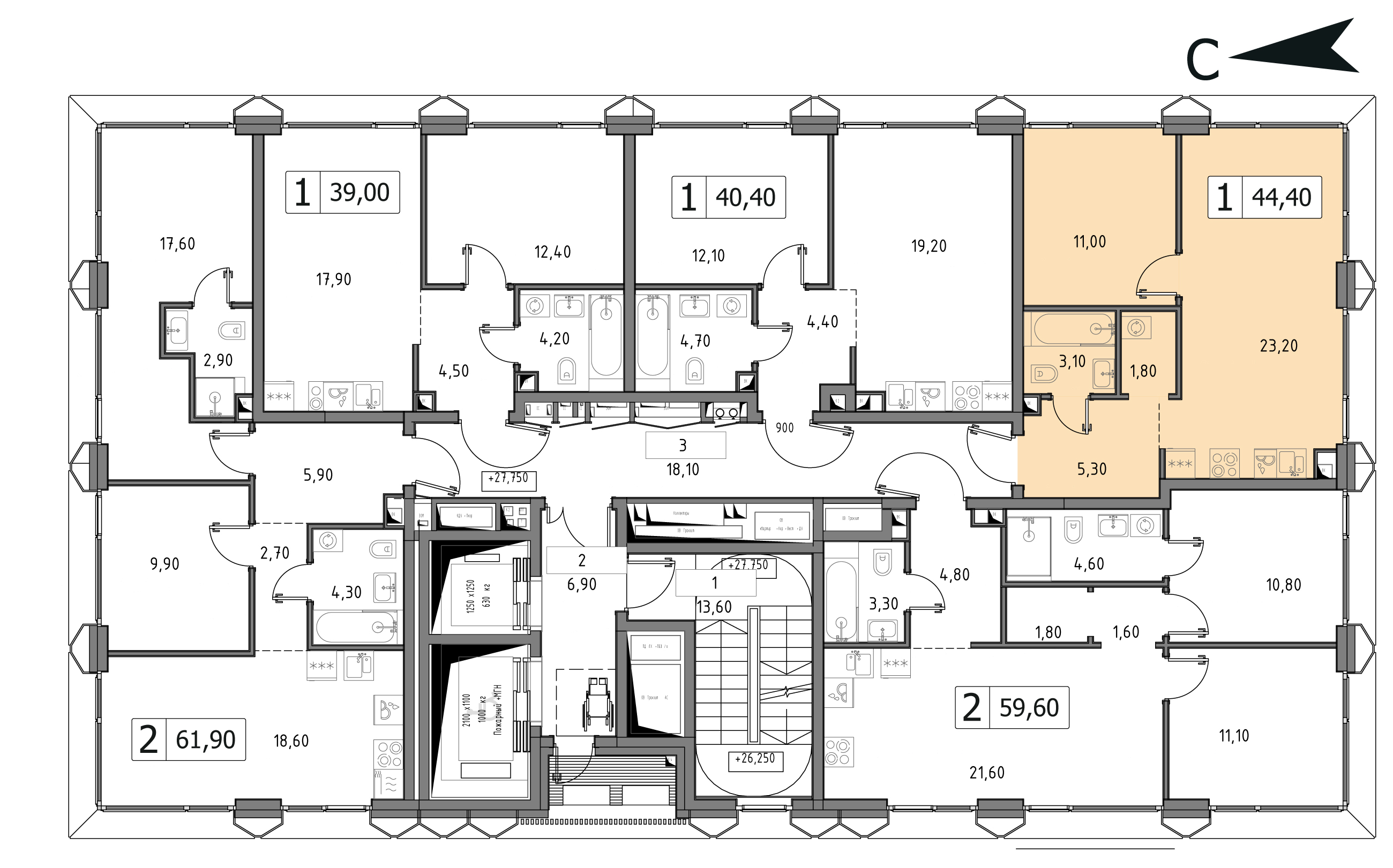 от 39 м2