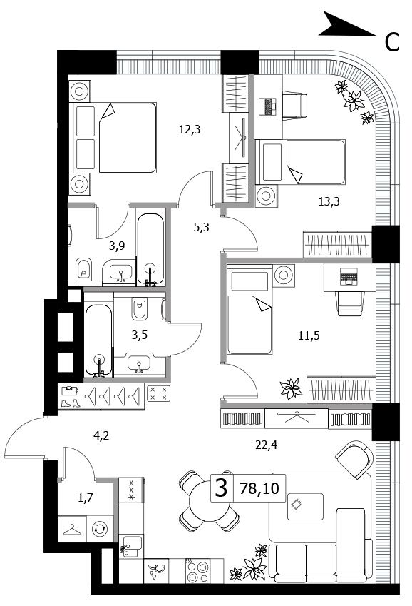 3 комн.