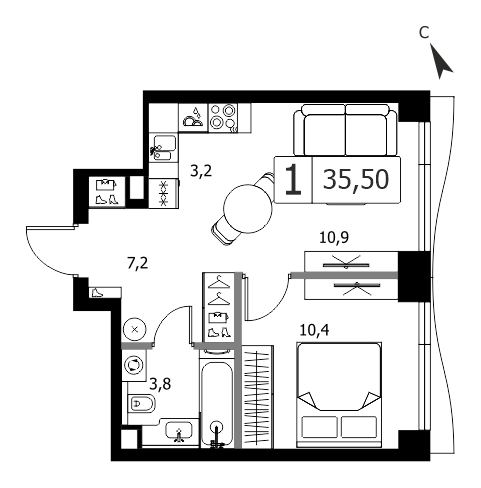 Комфортная однокомнатная квартира квартира площадью 35 м² без отделки. Лот расположен на 47 этаже, корпуса 6 жилого комплекса «CITYZEN» (СитиЗен).Комплекс находится по адресу: г. Москва, Вишневая, срок сдачи 2027г.. Это соединение удобной инфраструктуры городской застройки и зеленых зон отдыха.