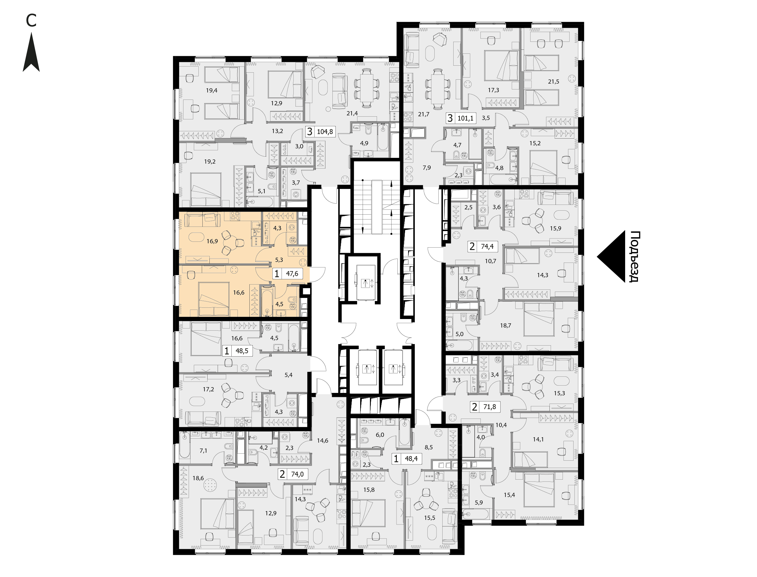 - Трехкомнатная квартира 98.9м², 3 этаж
