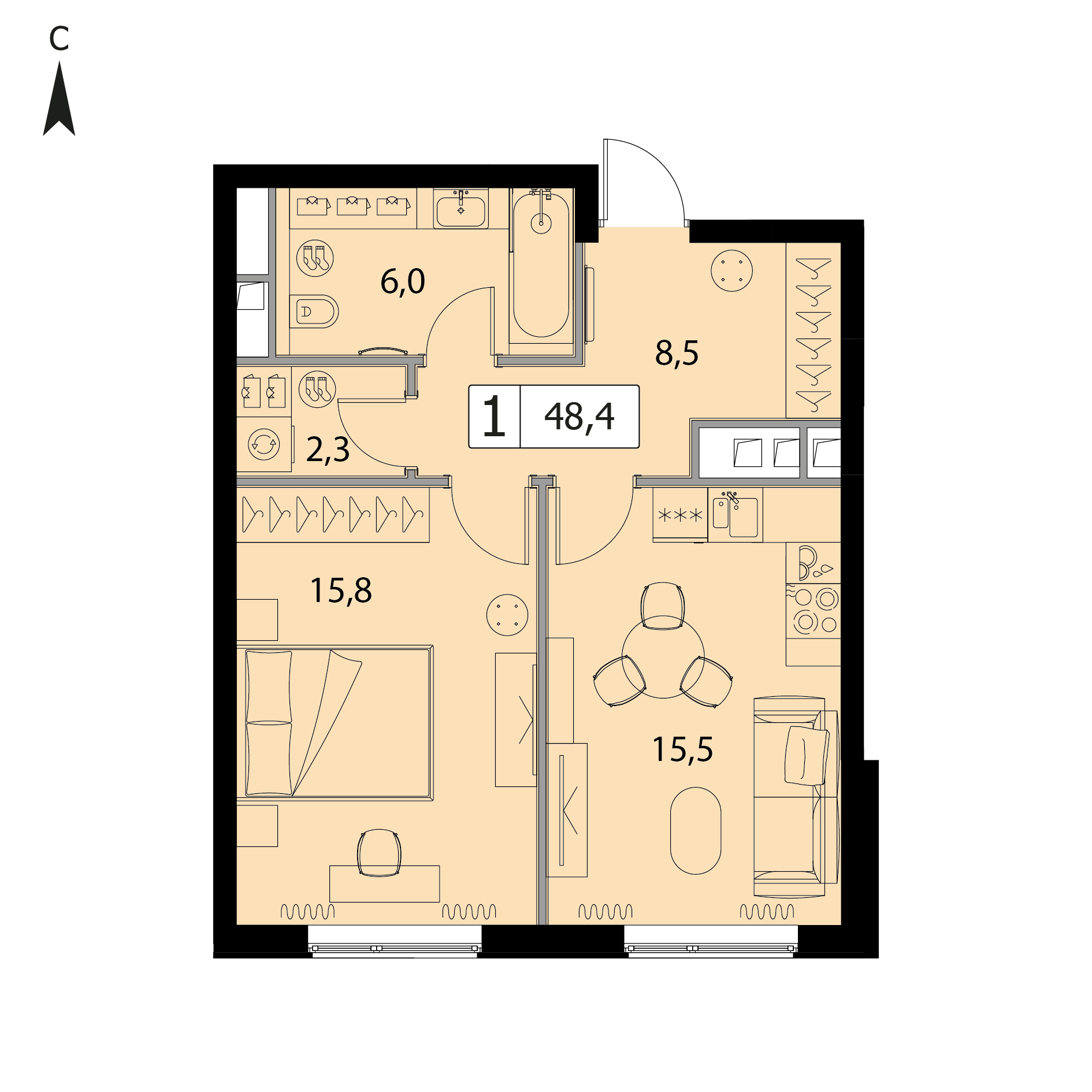 Двухкомнатная квартира №80, 71.6 м², 11 этаж, Жилой комплекс «Интонация»