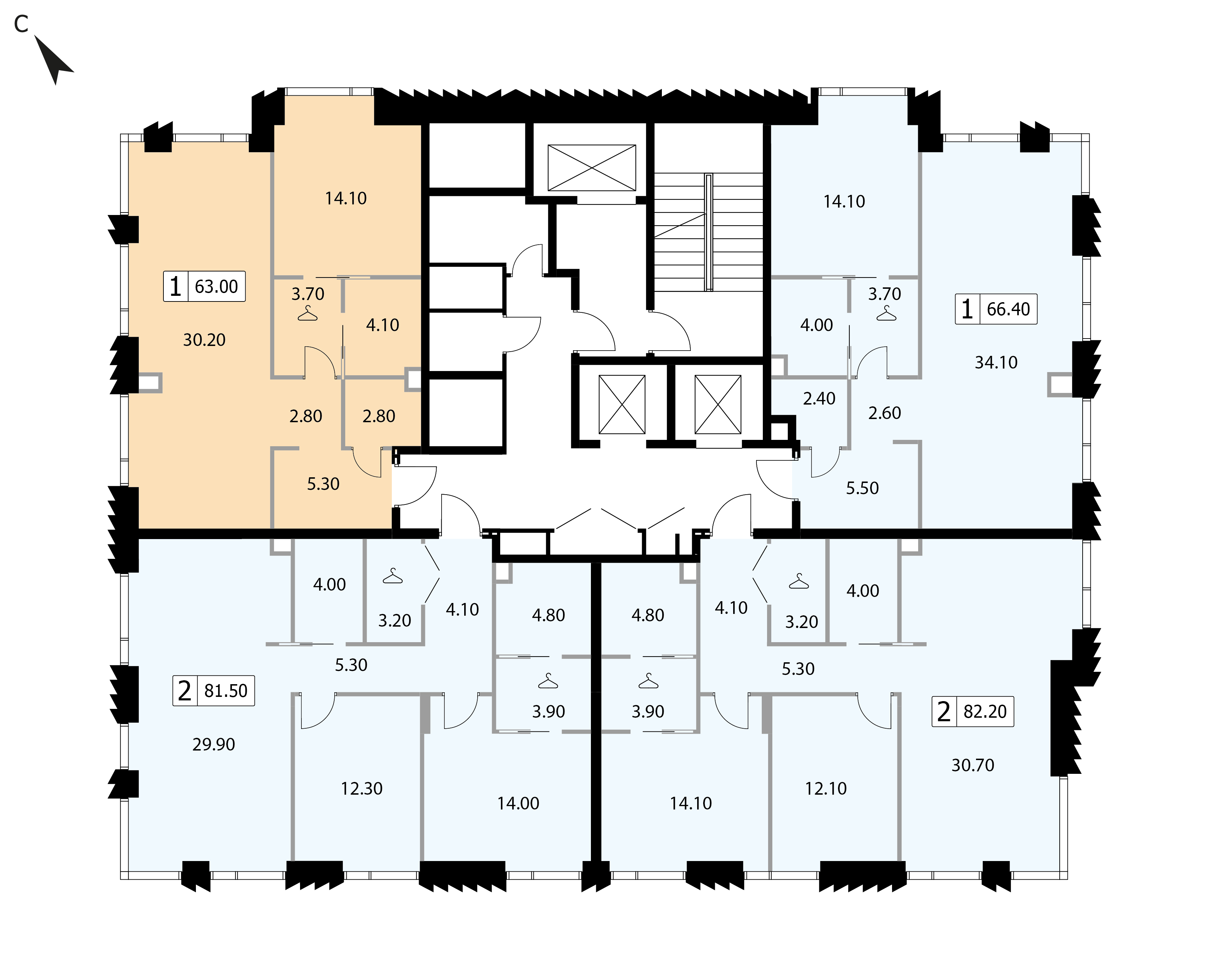66.4 м²