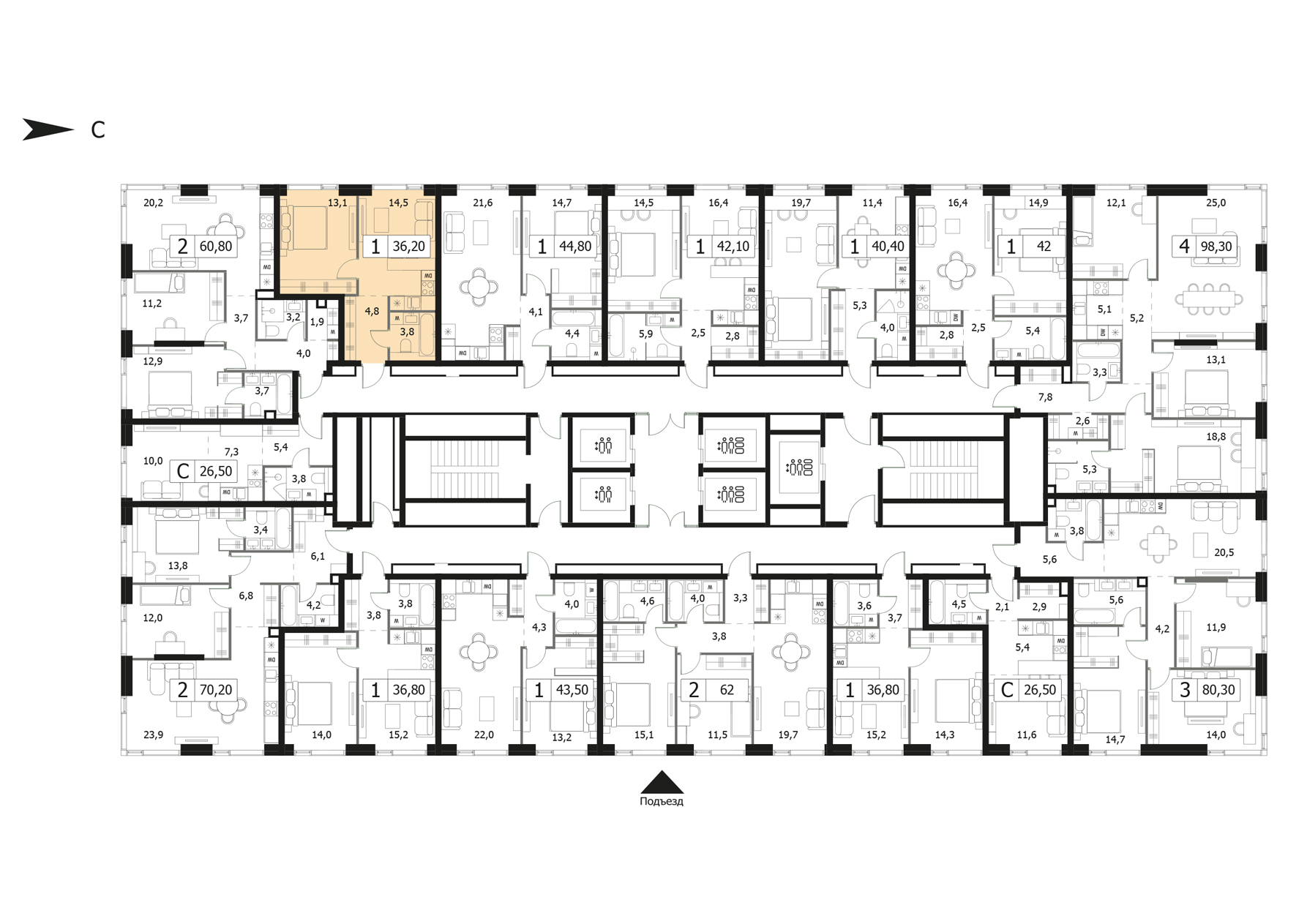 Однокомнатная квартира 36.2 м², 13 этаж, ЖК «Моментс» (Moments)