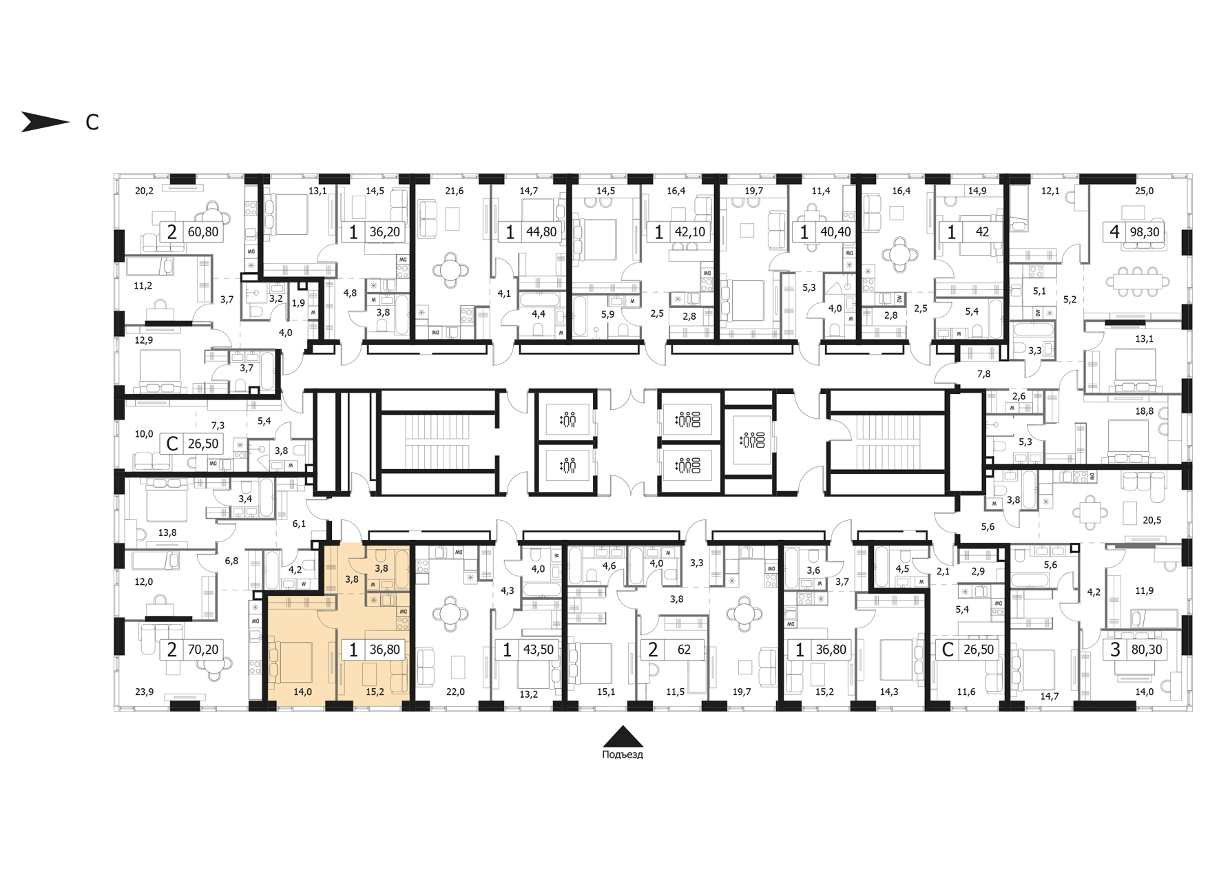 Однокомнатная квартира 36.8 м², 13 этаж, Жилой комплекс «Moments» (Моментс)