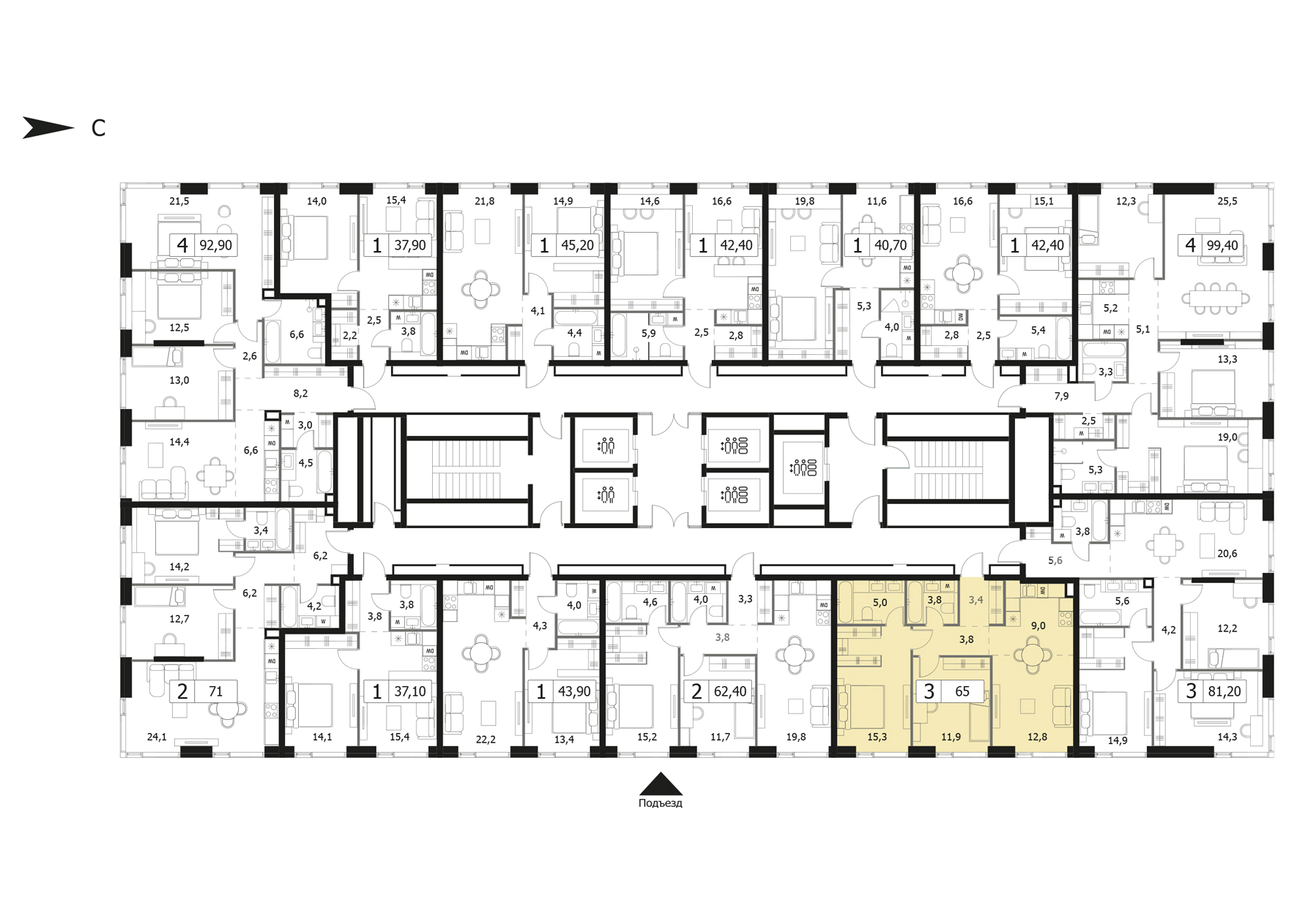 Двухкомнатная квартира №603, 65 м², 18 этаж, Жилой комплекс «Moments» (Моментс)