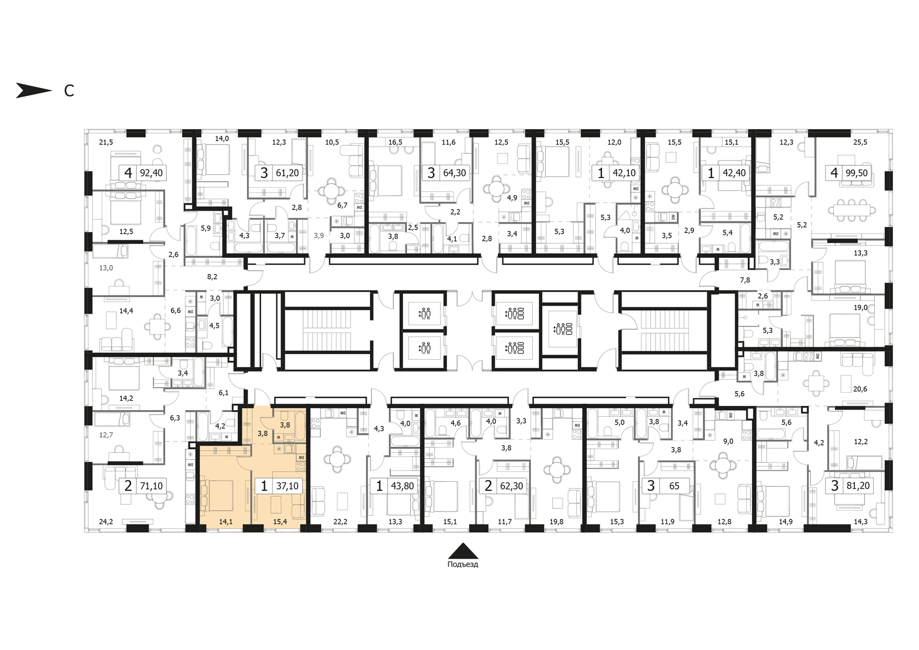 Однокомнатная квартира №739, 37.1 м², 29 этаж, Жилой комплекс «Moments» (Моментс)