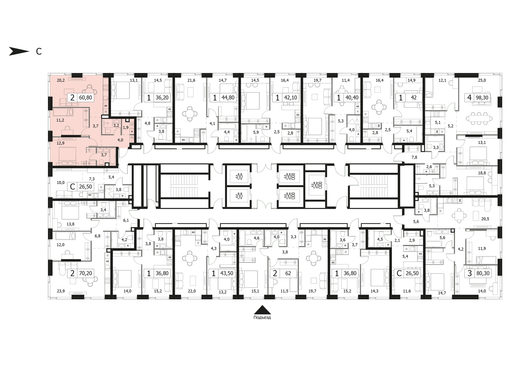 Двухкомнатная квартира 60.8 м², 5 этаж, Жилой комплекс «Moments» (Моментс)