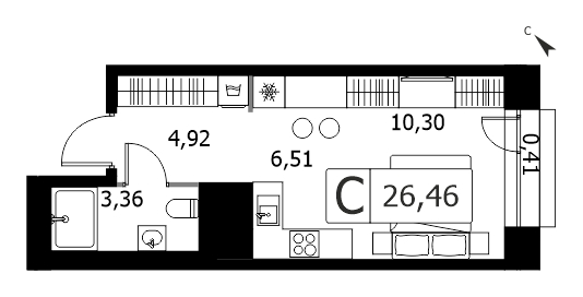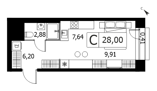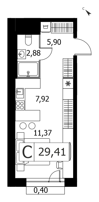 Студия 27.04 м², 14 этаж, ЖК «ЛАЙФ Варшавская» (LIFE)
